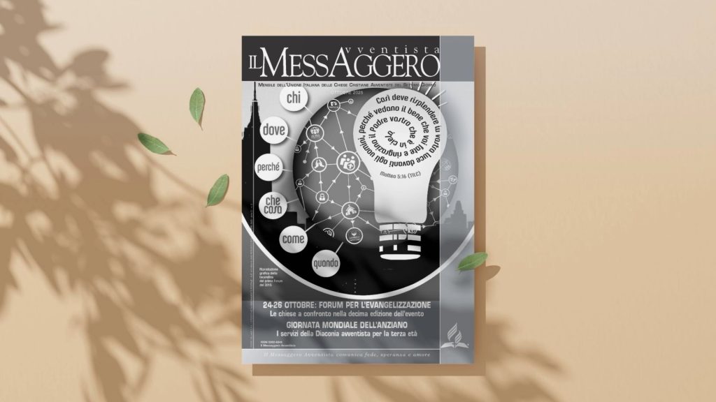 Nella rivista “Il Messaggero Avventista” di ottobre 2025, l’editoriale è a cura del pastore Ignazio Barbuscia, segretario generale dell’Unione Italiana delle Chiese Cristiane Avventiste del Settimo Giorno. Il titolo è: “Accoglienza e servizio. Un modello per le relazioni nella chiesa e nella missione”. Nella rubrica “Una parola per oggi” troviamo invece un articolo di Elisa La voce Il Messaggero Avventista – Ottobre 2025 è stata pubblicata per la prima volta su HopeMedia Italia. (Feed generated with FetchRSS)